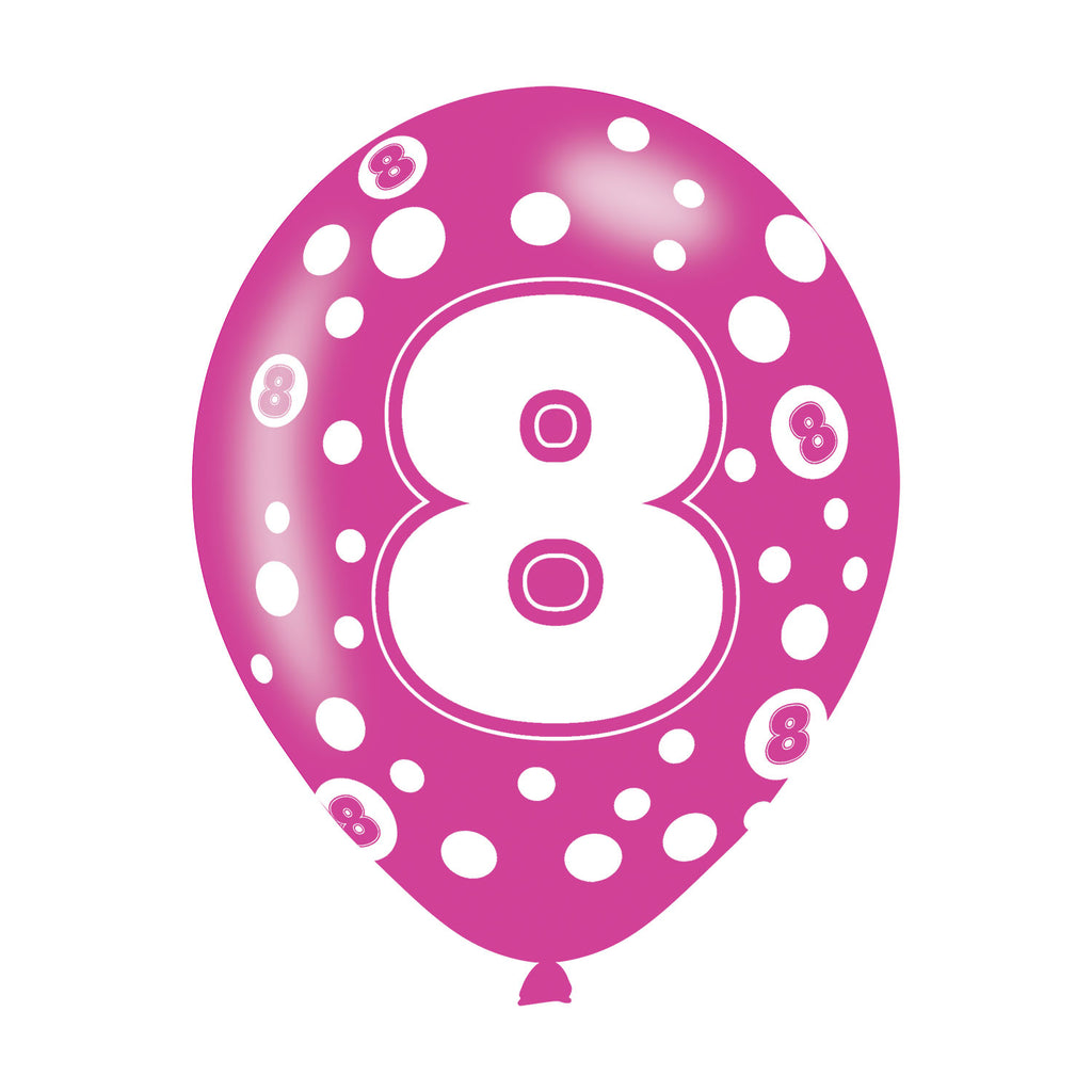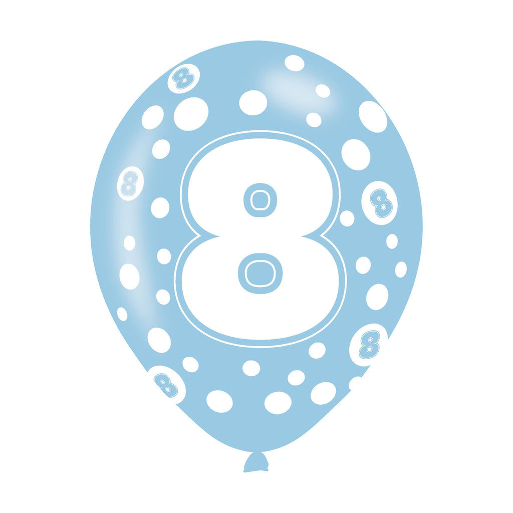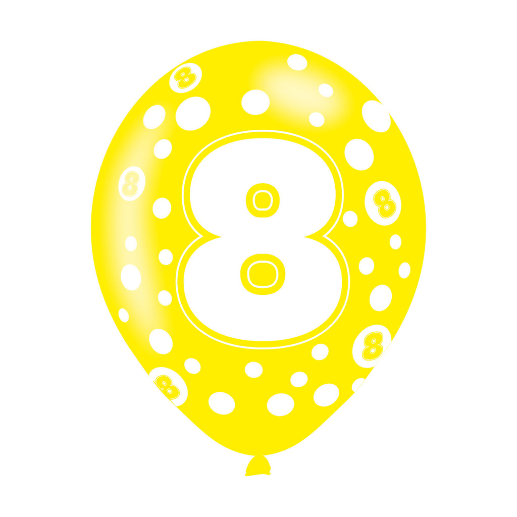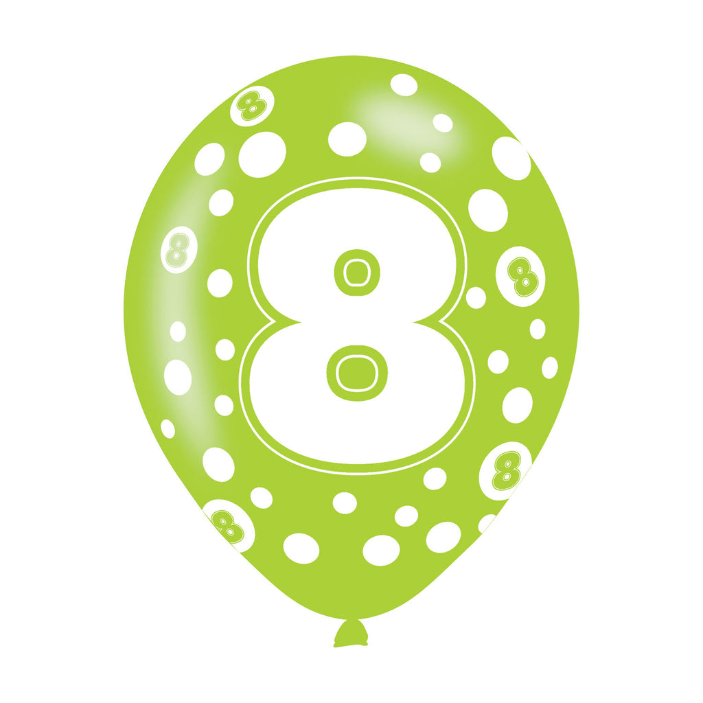 Pack of 6 x 11" assorted colours latex balloons printed with ages 8 & 9 (helium quality)